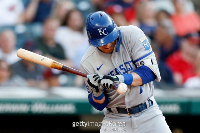 캔자스시티 로열스의 유격수 바비 위트 주니어(25)가 시속 154.3㎞/h 강속구에 왼팔을 맞고 교체됐다.