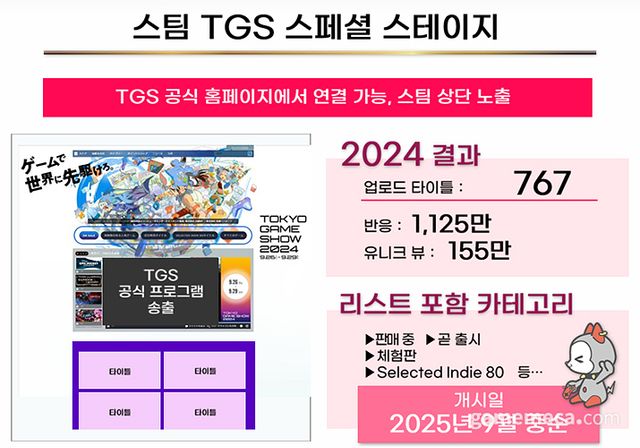 ▲ 9월 중순에 열리는 도쿄게임쇼 스팀 특설 페이지 주요 내용 (자료제공: 도쿄게임쇼 운영사무국)