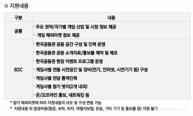 ▲ 도쿄게임쇼 한국공동관 지원 내용 (자료제공: 한국콘텐츠진흥원)