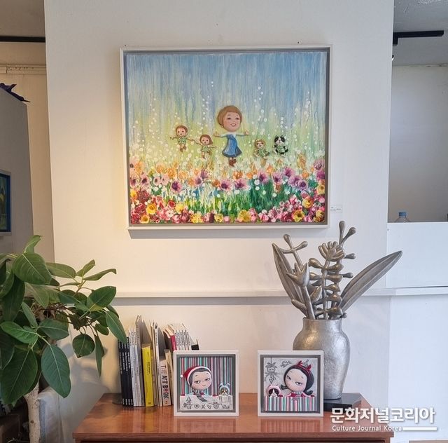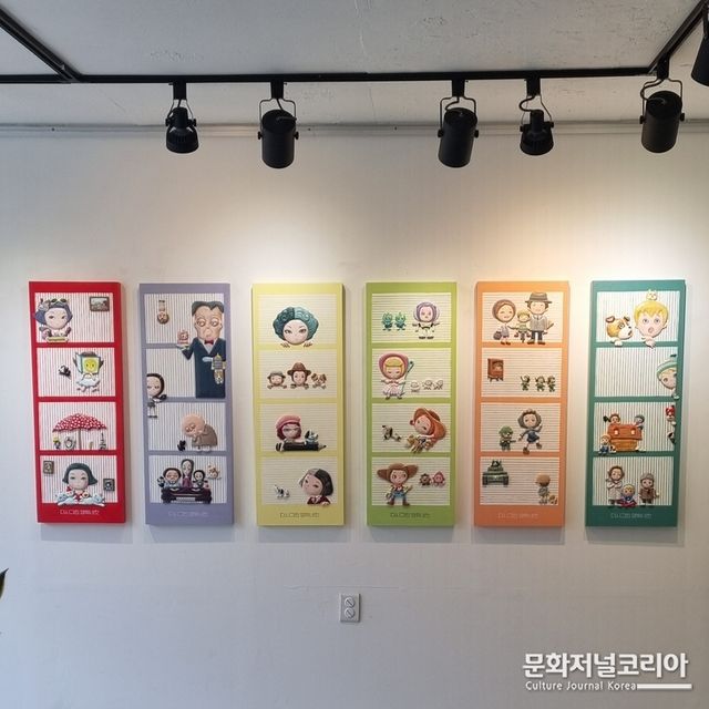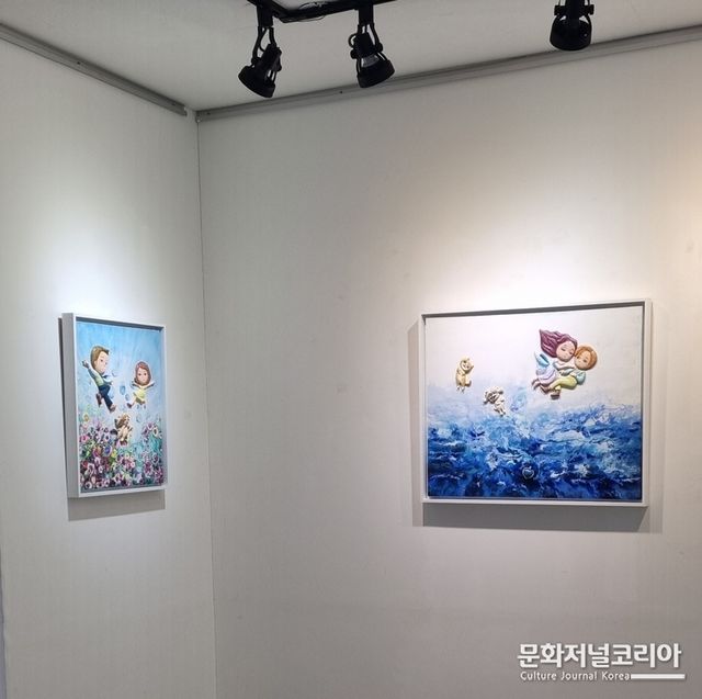 특히 작가는 친근하고 따스한 고양이와 강아지 캐릭터를 활용하여 인간의 내면적 감정을 위트 있게 표현하였고, 부드럽고 몽환적인 배경 위에 입체적인 부조 조형물을 더해 작품에 시각적 재미와 깊이를 부여했다.
