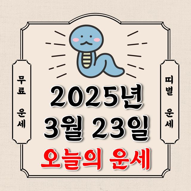 오늘의 운세 2025년 3월 23일 일요일 (음력 2월 24일 / 띠별 운세 / 생년월일 운세)에 대해 알아 보겠습니다.