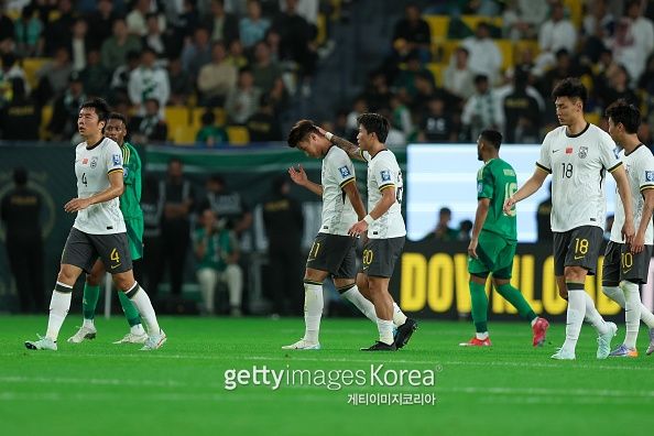 중국은 21일(한국시간) 사우디아라비아 리야드의 알 아왈파크에서 열린 2026 FIFA 북중미 월드컵 아시아 3차 예선 C조 7차전에서 사우디에 0-1로 졌다. 중국은 5패(2승)째를 기록하며 여전히 C조 최하위(승점 6)에 머물렀다.
