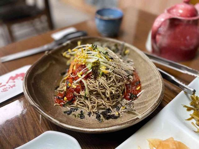 대표 메뉴인 미가면은 고소한 들기름과 간장소스에 비벼 먹는 메밀국수로 함께 나오는 육수에 면을 담가 먹으면 더욱 깊은 풍미를 느낄 수 있다.