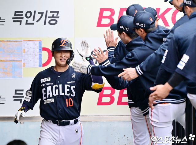 (엑스포츠뉴스 대구, 조은혜 기자) 지독했던 타격 슬럼프에 빠져 있던 한화 이글스가 믿기지 않는 뒤집기쇼를 펼치고 4연패 사슬을 끊었다. 단 1안타에 그쳤던 타선이 8회부터 뜨거워지기 시작하다 결국 역대급 역전 드라마를 만들어냈다.