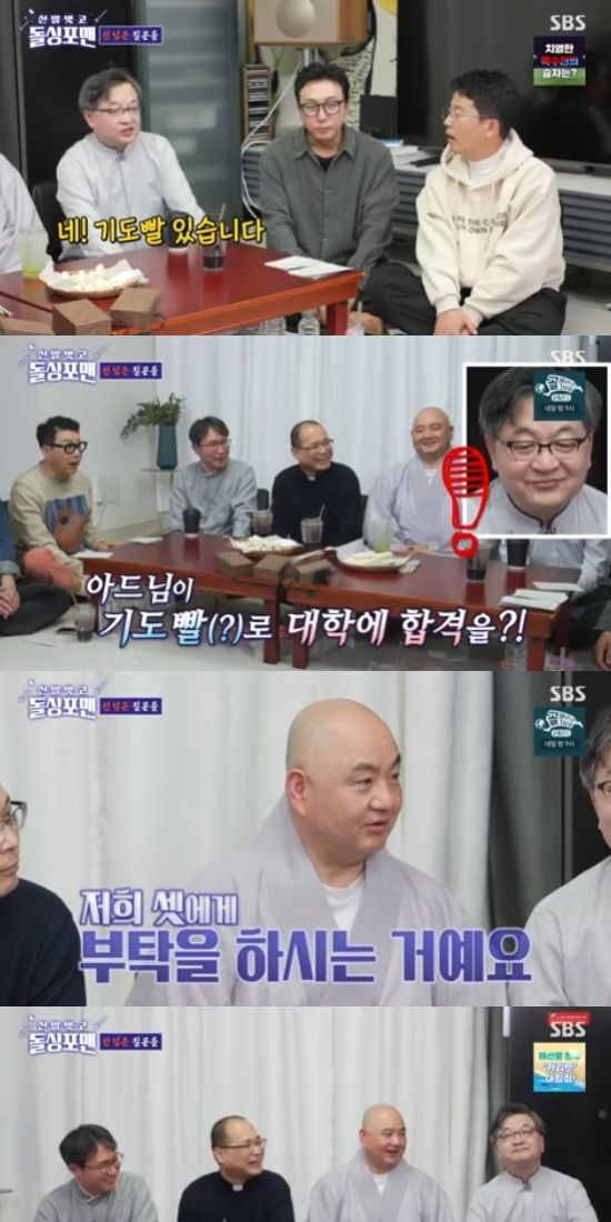 15일 방송된 SBS 예능 프로그램 '신발 벗고 돌싱포맨'에서는 김진 목사, 성진 스님, 하성용 신부, 박세웅 교무가 출연해 이야기를 나눴다.