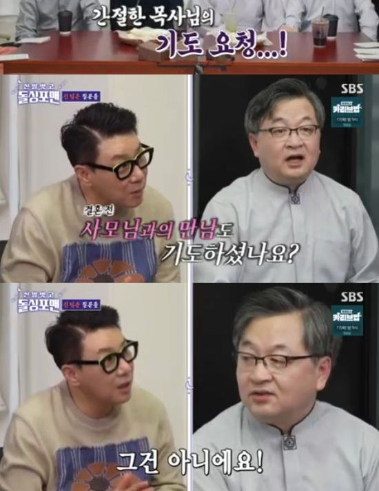 이날 김준호는 김진 목사에게 '기도빨'에 대한 질문을 던졌다. 이에 김진 목사는 "기도빨이라는 것이 있다. 기도라는 것이 상대의 행복과 삶을 위해 기도하면 진짜로 그 사람이 잘 된다. 그걸 많이 경험한다"고 했다.