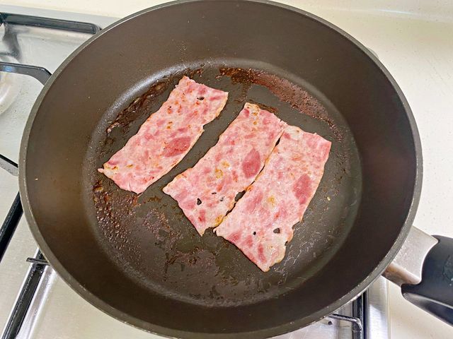 일단 베이컨은 예열하지 않은 팬에서 굽기 시작해야 돼요.