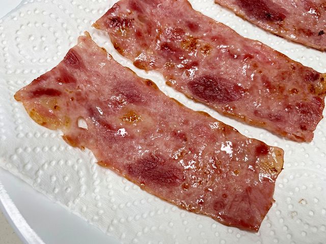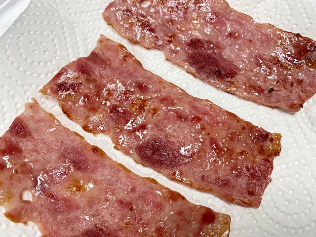 바짝 마르지 않아서 퍽퍽하지 않은 베이컨.