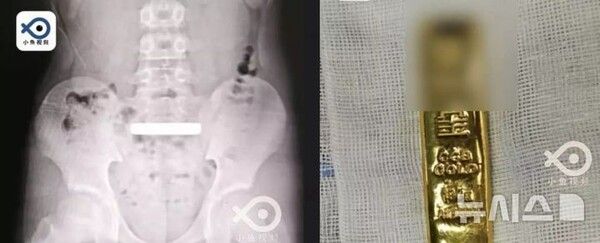 뉴시스 보도에 따르면, 12일(현지시각) 중국 온라인 매체 바스틸레포스트(bastille post)에 따르면, 장쑤성 쑤저우시에 사는 11살 샤오첸(가명)이 집에서 놀던 중 실수로 100g짜리 금괴를 삼켰다.