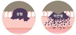 (그림 : 위암의 형태에 따른 분류, 미만형 위암은 점막을 따라 퍼지듯 분포되어 조기 발견이 어렵고 예후도 좋지 않다)