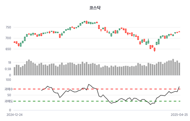 코스닥 지수는 이날 729.56에 출발해 732.8을 고점으로 기록한 뒤 729.69로 거래를 마쳤다. 전거래일 대비 3.61포인트(0.50%) 상승했고, 시작가보다는 0.13포인트(0.02%) 상승했다.