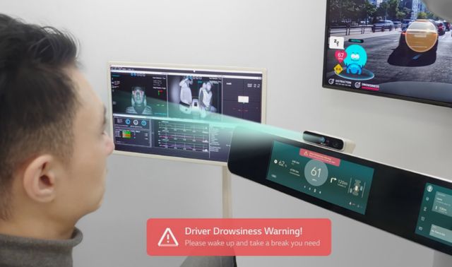 LG전자 인캐빈 센싱 솔루션이 운전자의 안면을 인식해 상태를 확인하고 있는 모습.