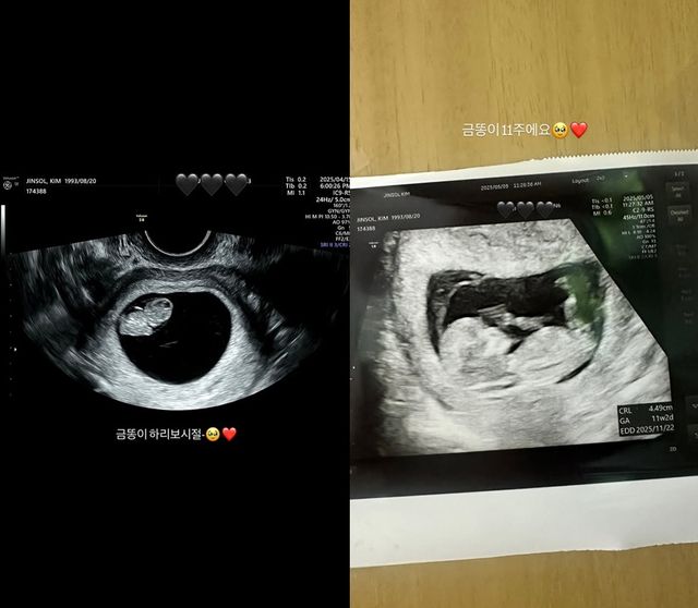 트루디는 초음파 사진에 남편의 계정을 태그했고, "금똥아 잘 부탁해♥", "금똥이 하리보시절", "금똥이 11주" 등 아기 자랑을 하며 기쁜 마음을 드러냈다.