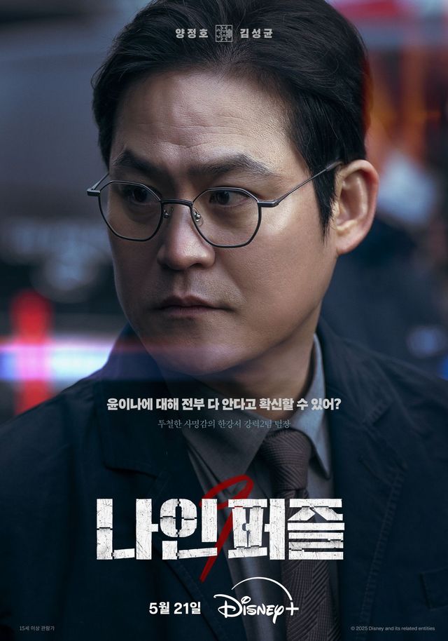 디즈니+ 시리즈 〈나인 퍼즐〉은 의문의 퍼즐 조각과 함께 다시 시작된 연쇄살인 사건의 비밀을 파헤치는 추리 스릴러다. 10년 전 미결 사건의 유일한 목격자이자 현재는 프로파일러로 일하는 '이나'(김다미), 그녀를 용의자로 의심하는 형사 '한샘'(손석구)이 서사의 중심을 이룬다. 서울한강경찰서 강력2팀장 양정호(김성균), 팀의 막내 최산(현봉식), 서울지방경찰청 광역수사대장(정만식)까지 주요 수사라인도 견고하다.