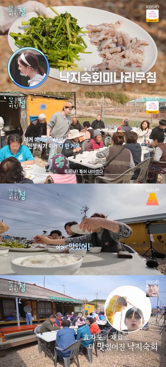 또 유자청으로 만든 미나리무침과 낙지 숙회에 관해 붐은 "이거 아이디어 민정 씨가 내서 다 한 거다"라고 말했고, 이에 도민들은 "특허 내! 특허 내야겠다"라고 말했다.