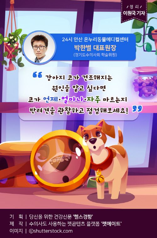 하지만 평소와 달리 반려견의 코가 건조하다면