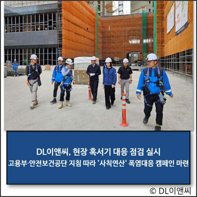 DL이앤씨(375500)가 본격적인 혹서기를 앞두고 현장별 대응 계획을 수립하고 이를 집중 점검하고 있다.