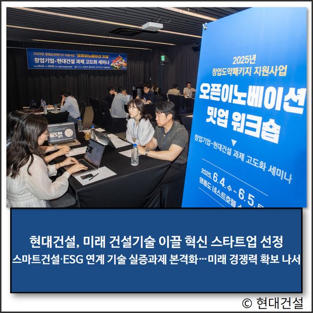 10일 현대건설은 중소벤처기업부와 창업진흥원이 주관하는 '2025년 창업도약패키지 지원사업'을 통해 미래 건설 분야를 이끌 유망 스타트업과 기술 중심의 오픈이노베이션을 추진한다.