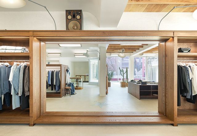 지난달 문을 연 ‘성수 86’은 로우클래식의 세 번째 오프라인 스토어이자, 새로운 디자이너 체제에서 처음 선보이는 공간이다. 새로 부임한 두 디자이너의 손길이 닿은 첫 스토어. 1층은 Lc가 자리한 곳으로, 미국 LA의 여유로운 일상에서 영감받은 컬러와 구조를 청량하게 배치했다. 2층은 메인 라인이 위치한다. 동양적인 감성과 우디한 소재가 조화를 이루며, 한결 묵직하고 안정된 분위기를 자아낸다. 성수동을 택한 건 예전 가로수길에서 느꼈던 생기와 입지적 가치라는 전략적 판단이 작용했다.