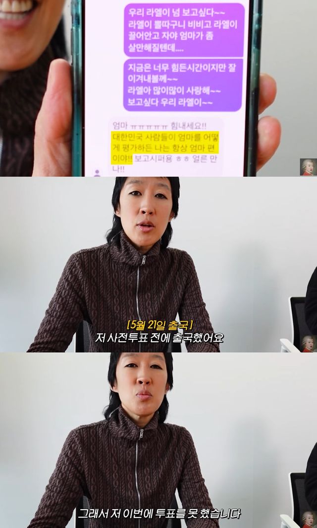 또한 홍진경은 "저 솔직히 말씀드린다. 사진투표 전에 출국했다. 이번에 투표를 못했다"며 해외 일정이 연초부터 잡힌 탓에 갑자기 잡힌 대선일정에 맞출 수 없었다고도 밝혔다.