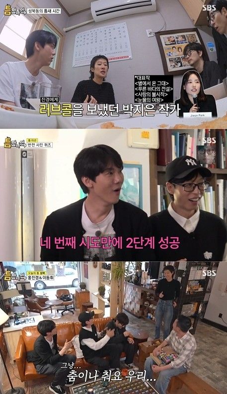 '틈만 나면,'은 매주 화요일 오후 9시에 SBS에서 방송된다.