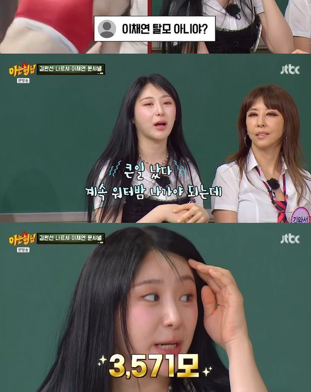 이어 "이채연 '탈모설'이 돌았다"며 "그래가지고 '큰일 났다. 나 계속 워터밤 나가야 하는데' 하고 머리를 심었다. 바로 심었다"고 말해 이목을 끌었다.