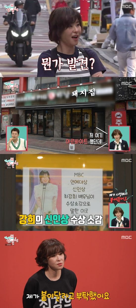 최강희와 미자는 최강희가 아르바이트했던 고깃집으로 향했다. 고깃집 문에는 최강희의 사진이 붙어있었다. 최강희는 "제가 '붙여주면 안 돼?'라며 붙여달라고 부탁했다"라고 밝혔다.
