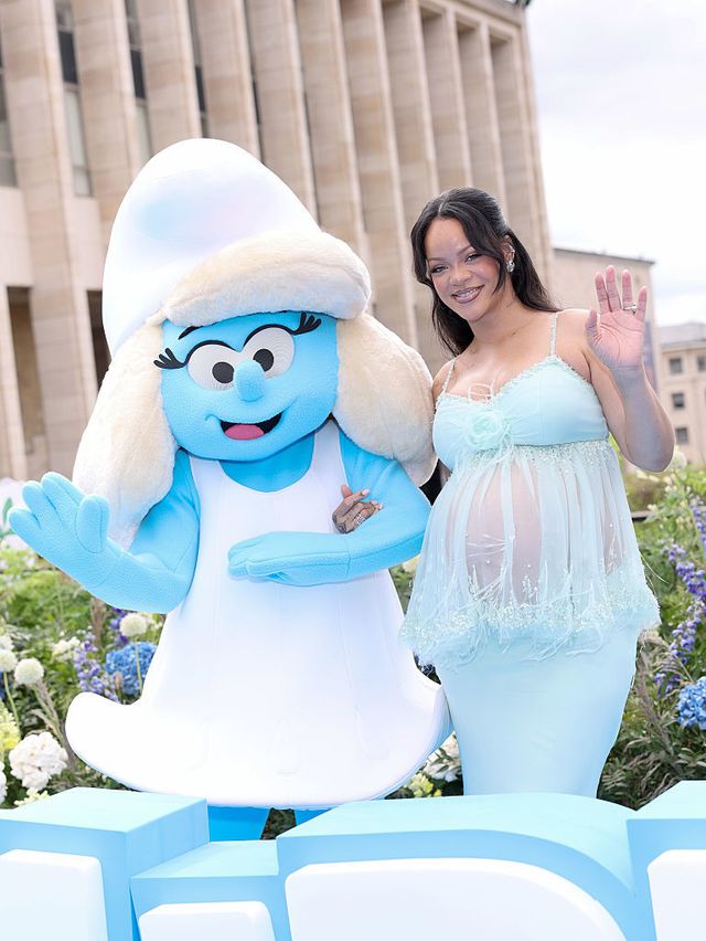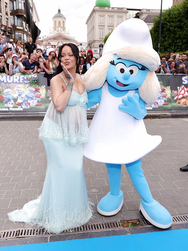 28일(현지시간) 미국 연예매체 피플 등 외신에 따르면, 리한나는 힙합 아티스트 에이셉 라키(A$AP Rocky)와 함께 ‘스머프’ 시사회 레드카펫에 등장했다.