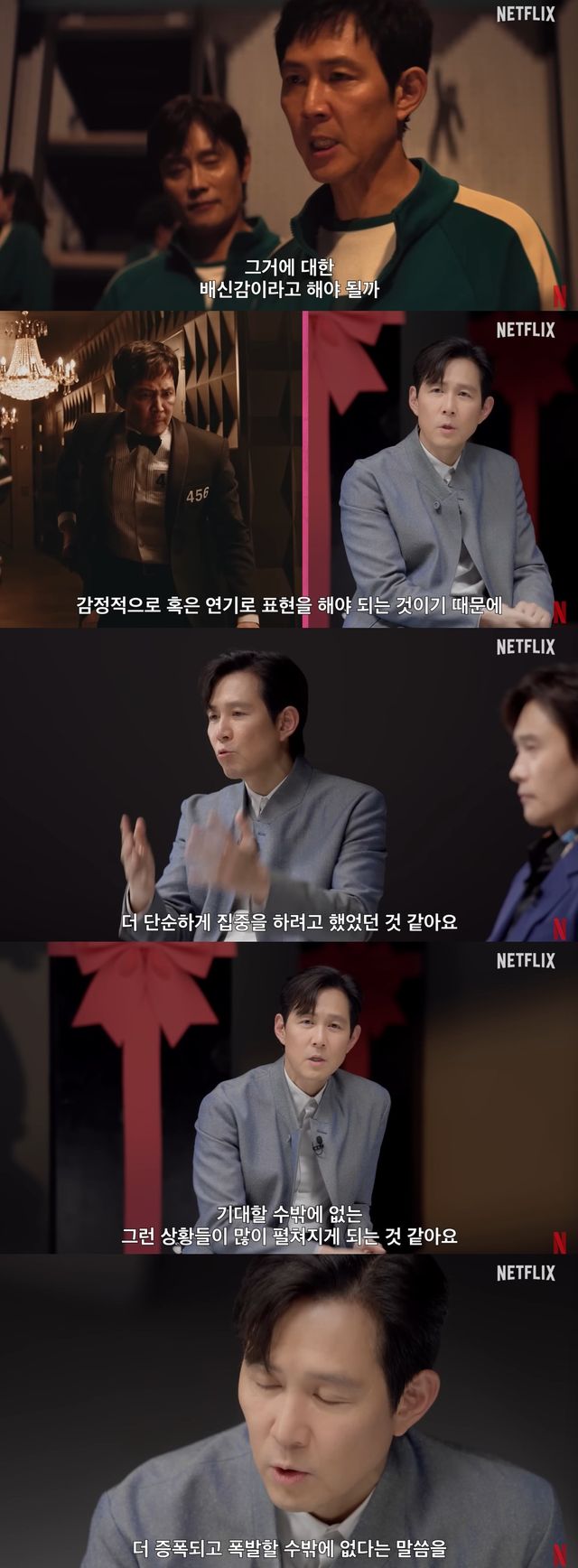 이날 넷플릭스 시리즈 '오징어 게임' 시즌3의 주역 이정재와 이병헌은 함께 시리즈를 시청하며 각자의 생각과 비화를 공개했다.