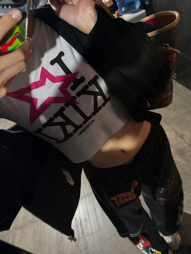 리사의 크롬 하츠 사랑은 여기서 끝이 아닙니다. 리사는 아이코닉한 크로스 로고가 더해진 데님 진과 크롬 하츠 x 데들리 돌 아트 바젤 스웨트 팬츠로 빈티지와 스트리트 무드를 능숙하게 오갔는데요. 여기에 그의 첫 솔로 앨범 〈Alter Ego〉의 한정판 굿즈로 발매되었던 크롭 티셔츠까지 매치해, 펑키하고 키치한 무드를 완성했군요.