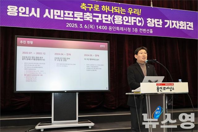 이상일 용인특례시장은 지난 3월 6일 시청 컨벤션홀에서 기자회견을 열어 '용인시 시민프로축구단' 창단을 선언했다./사진=용인시