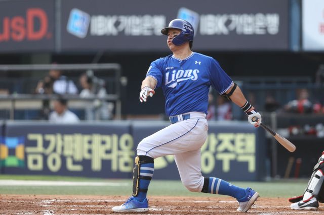 강민호는 1일 서울 잠실야구장에서 열린 2025 KBO리그 정규시즌 두산 베어스와 원정 경기에 7번 타자·포수로 선발 출전해 2회 초 0-0 균형을 깨는 투런 포를 터뜨렸다. 시즌 6호.