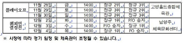 이번 리그에서는 △고양홀트 △대구광역시청 △무궁화전자 △제주특별자치도 △춘천타이거즈 △코웨이블루휠스 등 총 6개 구단이 참가한 가운데 전국 7개 체육관에서 △정규리그(7월4일~10월26일) 45개 경기와 △플레이오프(11월28~30일) △챔피언결정전(12월2~4일)을 거쳐 최종 우승자를 가린다.