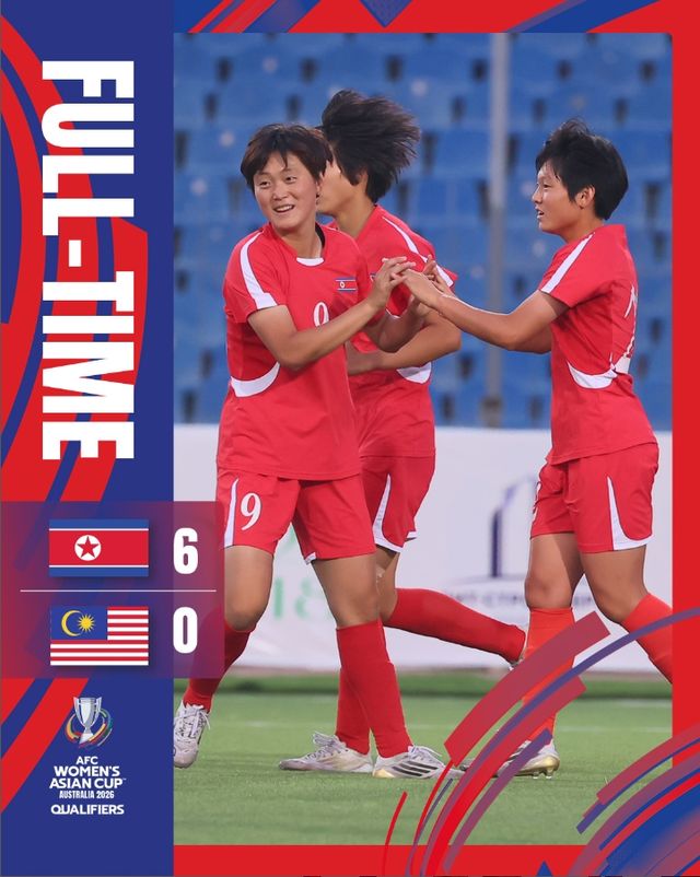 북한은 5일(한국시간) 타지키스탄 두샨베에서 열린 말레이시아와의 2026 아시아축구연맹(AFC) 여자아시안컵 예선 H조 3차전에서 6-0 대승을 거뒀다.