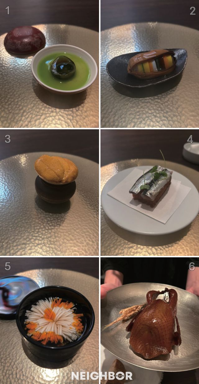 마지막으로 등장한 디저트에는 잠시 실소가 터져 나왔다. 그도 그럴 것이 한국에서 직접 공수한 샤인머스캣이 자랑스러운 특산품처럼 소개된 것. 방금 한국에서 날아온 방문자에게는 다소 실망스러운(?) 디저트임에도 불구하고 베누에서의 경험은 매우 인상적이었다. 프렌치 테크닉을 기반으로 한국, 프랑스, 일본, 중국, 미국의 맛이 공존하는 디시들은 단순히 한국의 재료를 사용하는 데 그치지 않고 한국의 사고방식과 정체성을 극명하게 담아냈으니까.