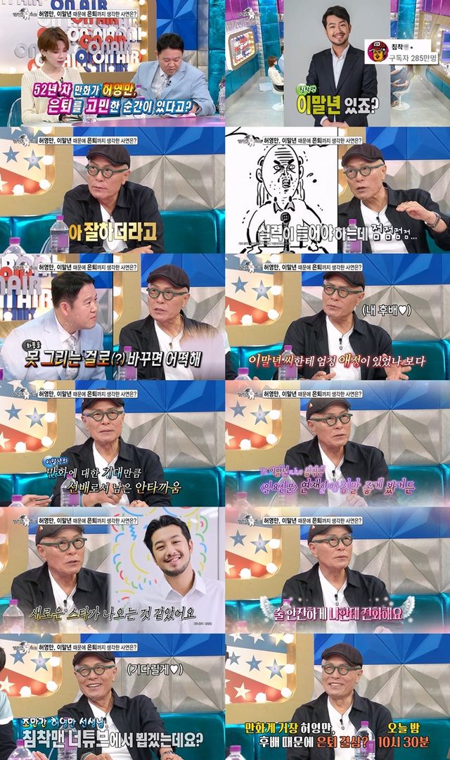 '라디오스타'에 출연한 만화계 거장 허영만이 은퇴를 고민하게 만든 후배로 이말년을 언급하며, 그를 향한 애정과 솔직한 조언을 건넨다.