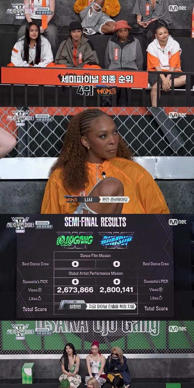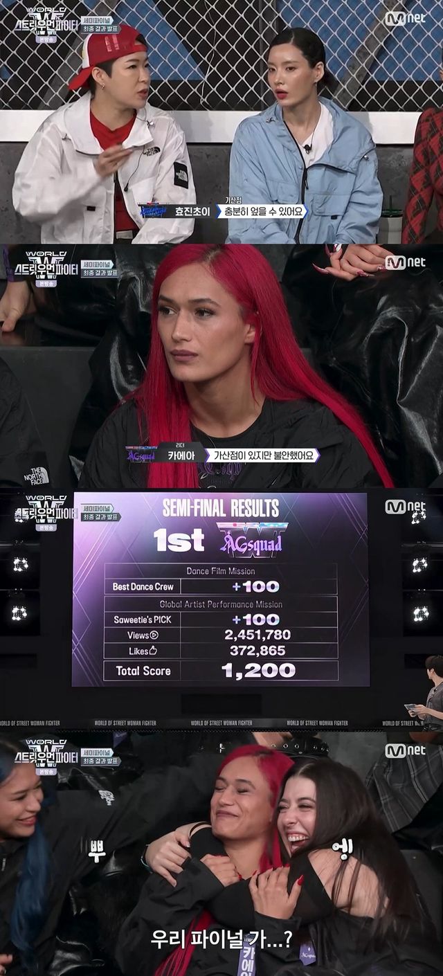 15일 방송된 Mnet '월드 오브 스트릿 우먼 파이터'(이하 '월드 오브 스우파(WSWF)') 8회에서는 에이지 스쿼드(AG SQUAD), 범접(BUMSUP), 모티브(MOTIV), 오사카 오죠 갱(OSAKA Ojo Gang) 네 크루 가운데 파이널로 진출할 세 크루가 정해졌다.