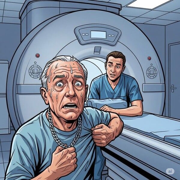 MRI 기계의 강한 자기장이 그의 금속 목걸이에 반응해 그를 끌어당긴 것이다.