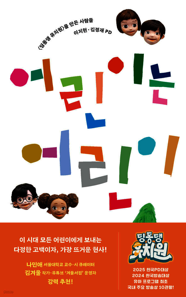 매일 아침 8시에 방송되기까지, <딩동댕 유치원> 에는 100명이 넘는 사람들이 함께했습니다. 누군가는 “애들 방송 만드는 건데, 뭐 별 거 있어?” 생각하지만, 정반대입니다. 오히려 더 섬세하게, 더 진심으로 다가가야 하는 어려운 작업입니다. 그 어려운 일을 PD, 작가, 성우, 배우, 손인형 연기자, 카메라팀, 기술팀, 그래픽팀, 공간디자인팀까지 모두가 기적처럼 3년을 해왔습니다. 저와 김정재 PD가 대표 저자로 이름을 올렸지만, 이 책은 함께 땀 흘린 모든 사람이 주인공인 ‘어린이 프로그램을 만드는 어른들의 분투기’입니다. 딩동댕>