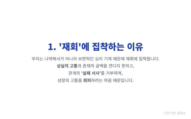 그 단단한 치유의 토대 위에서, 당신은 비로소 재회든 새로운 만남이든, 진정한 행복으로 나아갈 수 있는 선택의 자유를 얻게 될 것이다.