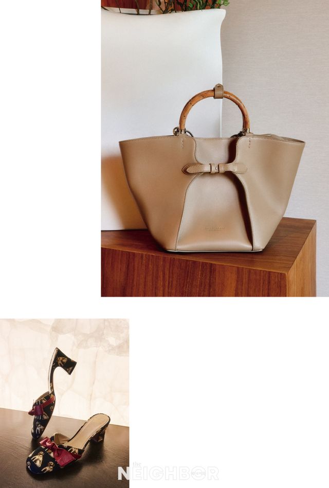Ralph Lauren Collection 우드&메탈 핸들이 우아한 카프스킨 토트백 5백55만원.