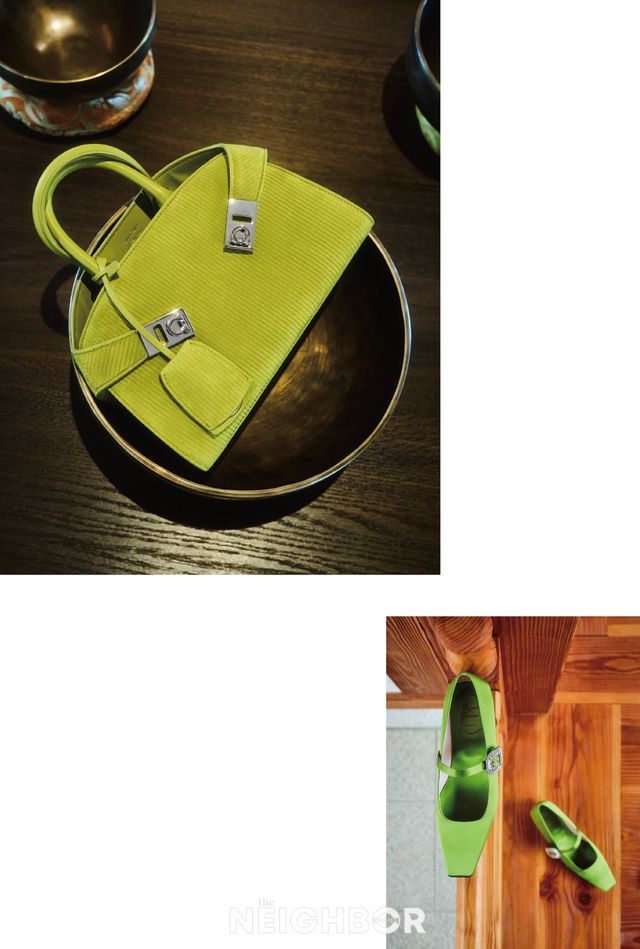 Ferragamo 코듀로이 소재를 덧댄 미니멀한 실루엣의 허그 백 가격 미정.