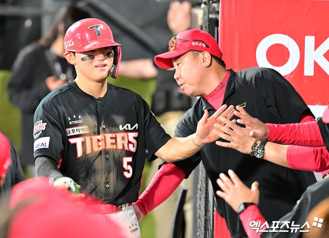 1일 한화전을 앞두고 이범호 감독은 김도영에 대해 "치는 모습은 영상으로 다 봤다"면서 "전부터 몸은 문제가 없었다. 두 번째 다치고 난 뒤에 (재활) 스케줄을 타이트하게 잡지 않고 여유있게 잡고 시켰고, 몸 상태는거의 완벽하다고 얘기를 들었다"고 전했다.