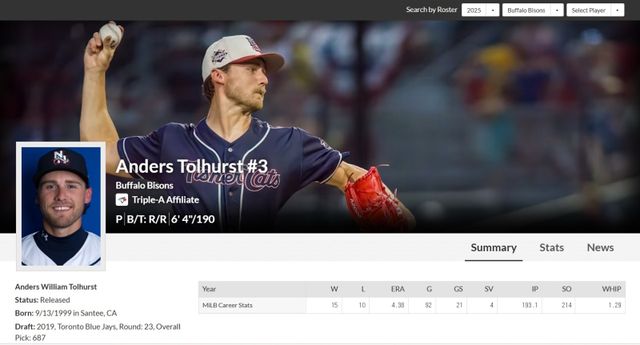 톨허스트는 텍사스 레인저스 산한 버팔로 바이슨스 산하 소속으로 지난 30일 시라큐스 메츠(뉴욕 메츠 산하 트리플A)전에 선발 등판해 5와 3분의 1이닝 3피안타 2볼넷 무실점을 기록했다. 당시 투구 수는 83개(스트라이크 49개)였다.