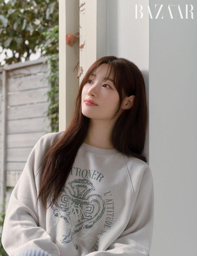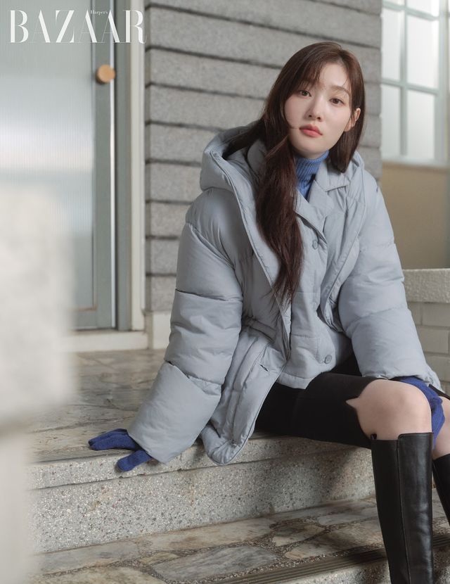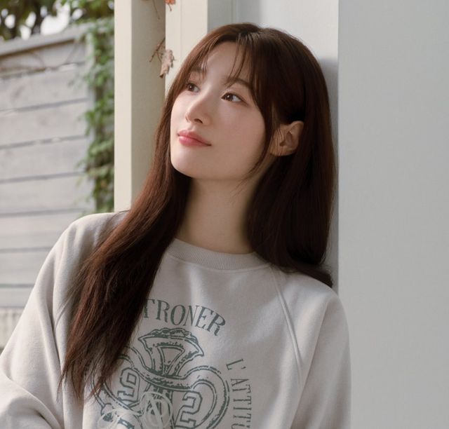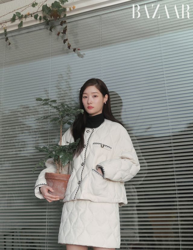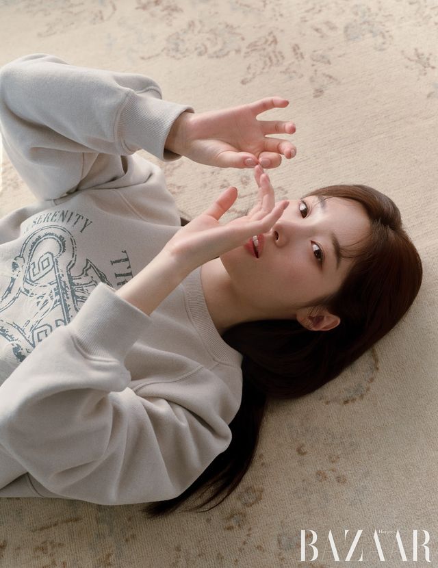 보랏빛 오버핏 니트와 '긱시크' 안경, 아이브 장원영