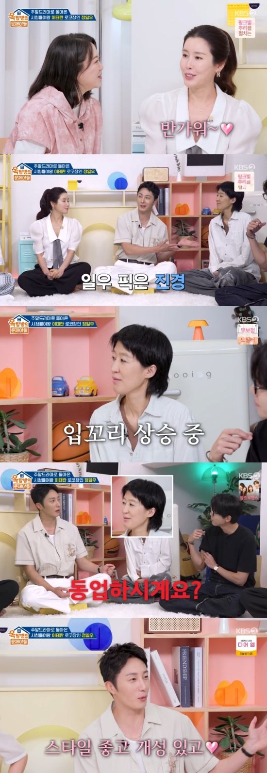 7일 방송된 KBS 2TV '옥탑방의 문제아들'(이하 '옥문아')에는 배우 이태란과 정일우가 게스트로 출연했다.