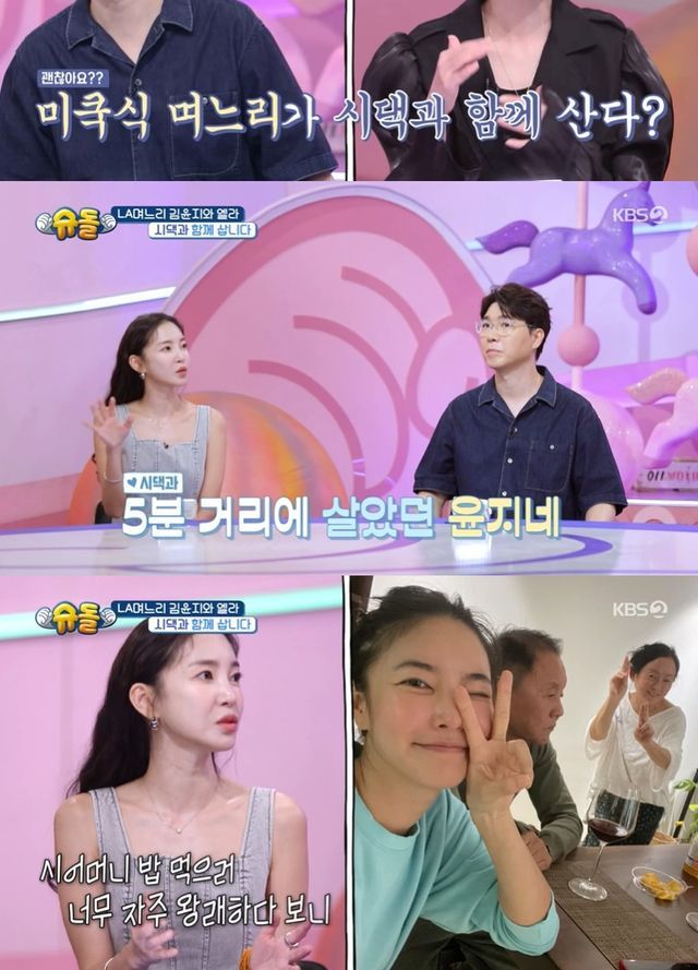 이에 김윤지는 "어머님, 아버님 댁에서 5분 거리 집에 살았었다. 일주일에 3~4번씩 가서 식사하고 조카들도 만나고 하다 보니 이럴 거면 그냥 가까운데 살면 더 좋지 않을까 해서 1년 만에 들어가서 4년째 살고 있다"고 전했다.