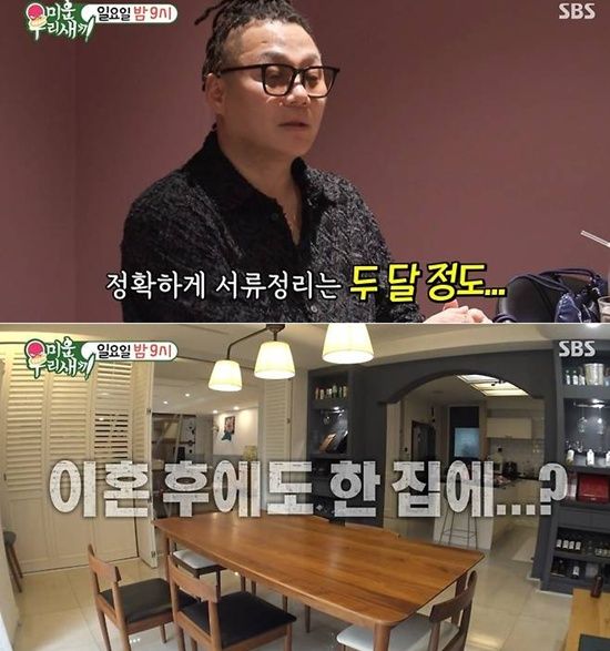 (엑스포츠뉴스 김예나 기자) 가수 윤민수가 이혼 후에도 전처와 함께 한 집에서 생활하고 있다는 사실을 '미운 우리 새끼'를 통해 직접 고백할 예정이라 알려지며 구설이 이어지고 있다.