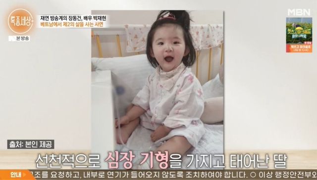 박재현은 딸과 영상 통화를 한 후 눈물을 흘렸다. 박재현은 “적응한다고 했는데, 딸만 보면 좀 그렇다. 못난 아빠 만나서 고생하는 것 같아서. 건강한 몸을 주지도 못하고, 같이 있어야 할 나이인데 같이 있지도 못하고. 선천성으로 심장이 안 좋아서 수술을 네 번 정도 크게 했다”라고 털어놓았다. 심장 위치가 반대로 태어난 딸은 8살인 지금까지 네 번의 수술을 견뎌왔다고.