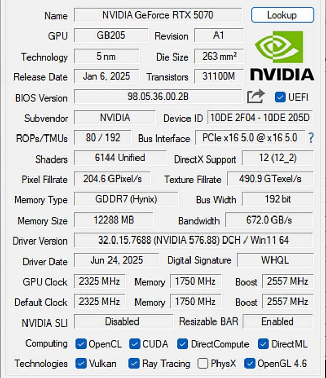칩셋 : NVIDIA GeForce RTX 5070 (4nm)